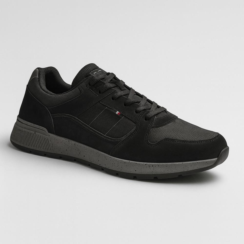 Дизайн моделі MP07-01543-05B виконаний у класичному чорному кольорі, що робить кросівки універсальними та легко поєднуються з будь-яким гардеробом. Кругла шкарпетка та плоска підошва підкреслюють сучасний стиль, а тканинні шнурки додають нотку спортивної елегантності. Застібка на шнурках дозволяє легко регулювати посадку взуття, забезпечуючи максимальний комфорт.