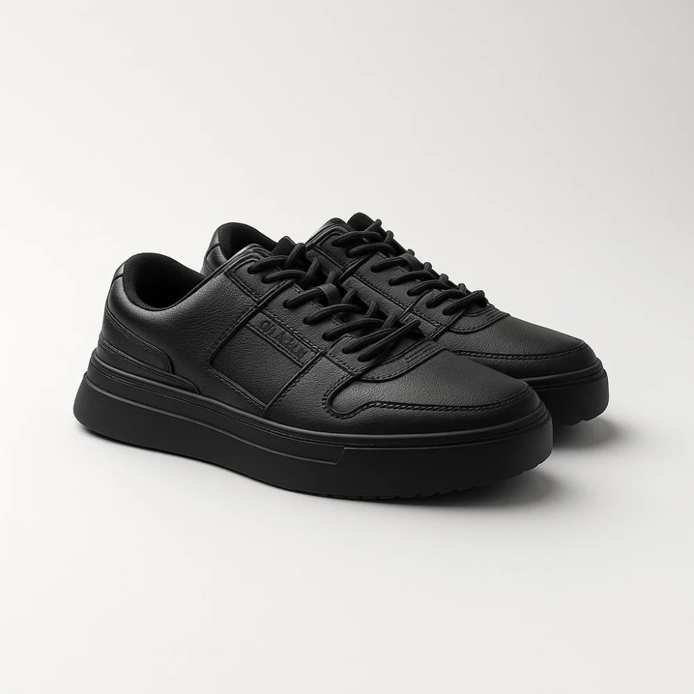 Мужские кожаные кроссовки классического черного цвета от бренда KEDDO. Верх выполнен из высококачественной натуральной кожи с матовой текстурой. Модель имеет низкий профиль и лаконичный дизайн с контрастными белыми строчками. Шнуровка выполнена с помощью плоских шнурков и металлических люверсов. Подошва из вулканизированной резины с выраженным протектором обеспечивает отличное сцепление с любой поверхностью. Внутренняя часть выполнена из мягкого текстиля для максимального комфорта. Кроссовки имеют анатомическую стельку и усиленный носок. Модель идеально сочетается с джинсами, спортивными штанами и шортами.