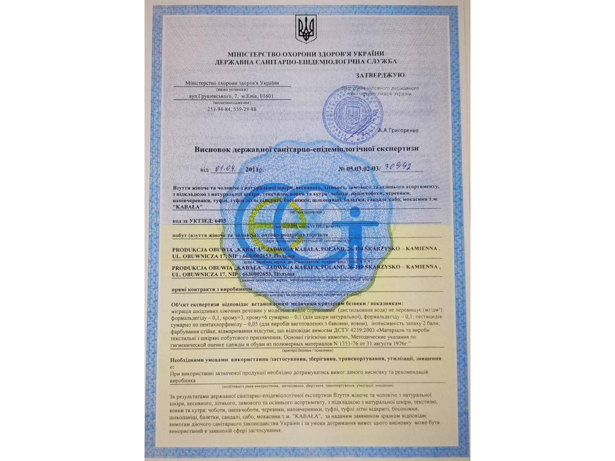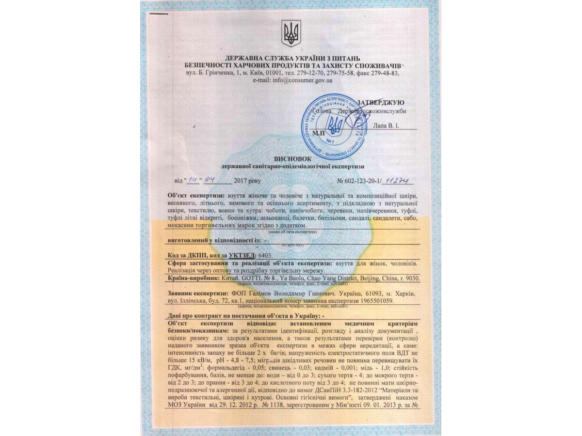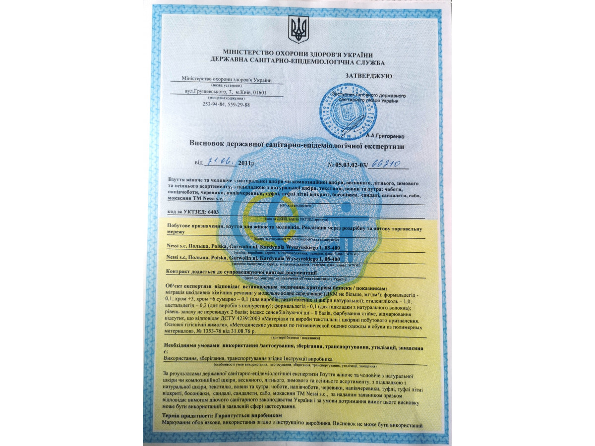Предоставляем сертификаты соответствия выдается на основании аттестата аккредитации НААУ и протоколов сертификационных испытаний аккредитованной лаборатории и является подтверждением качества обуви. Это гарантия того, что представленная обувь соответствует Требования госстандартов или технических условий производителя, а также является качественной и безопасной для здоровья людей. Сертификация обуви добровольная.