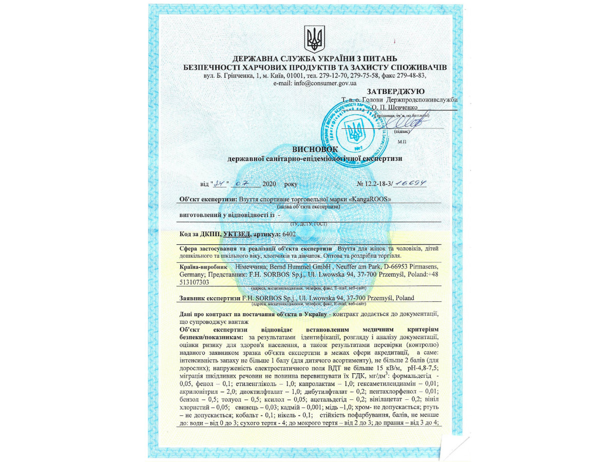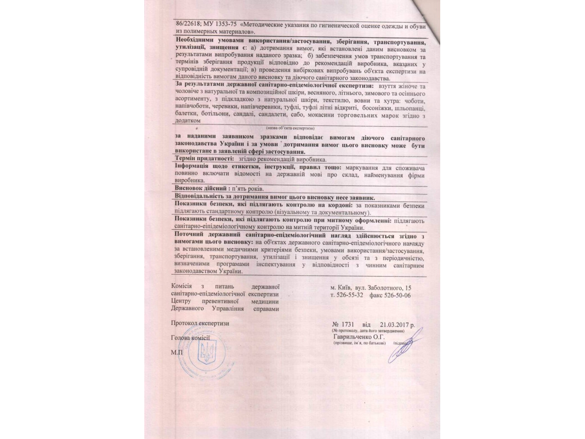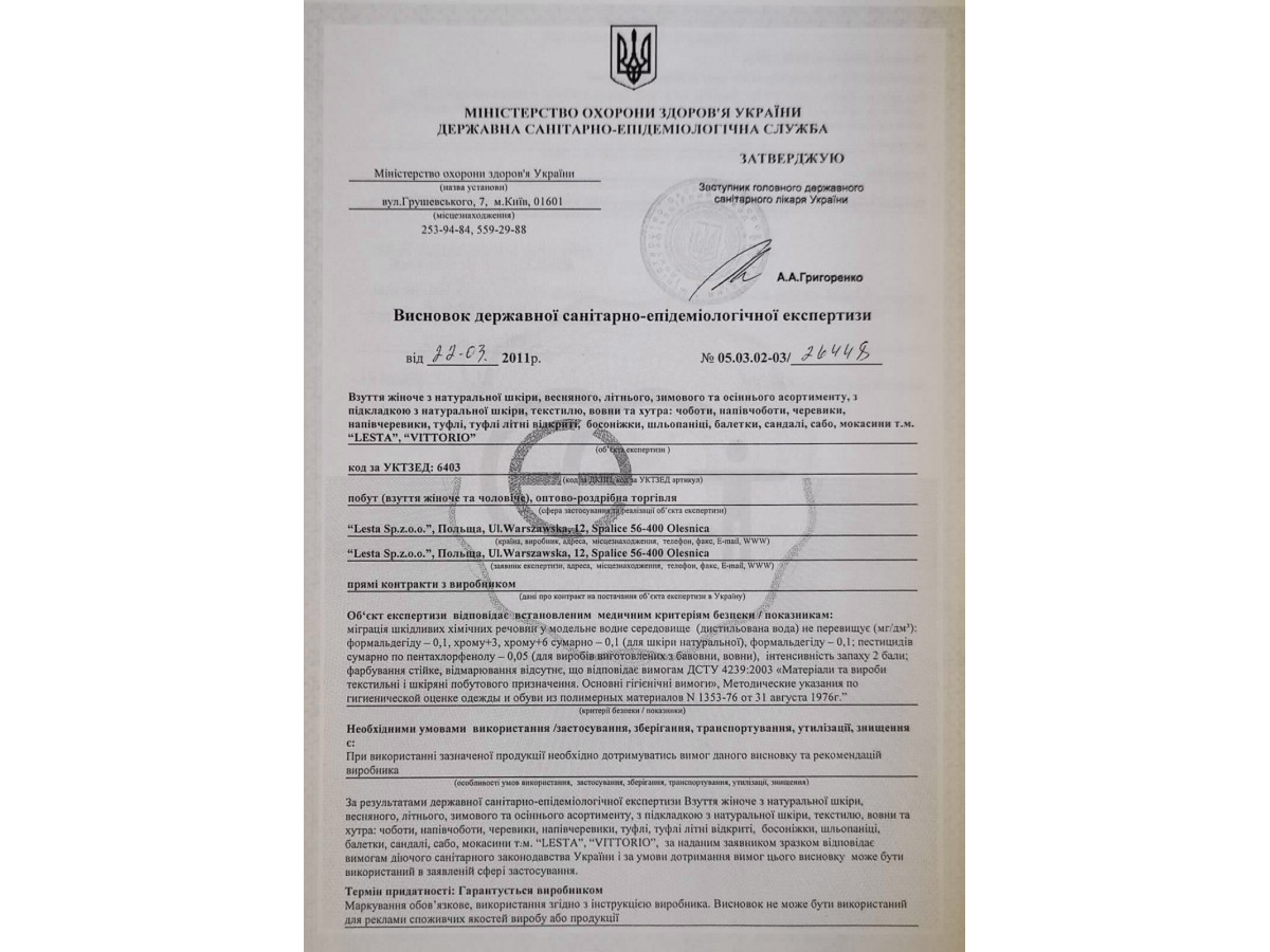 Предоставляем сертификаты соответствия выдается на основании аттестата аккредитации НААУ и протоколов сертификационных испытаний аккредитованной лаборатории и является подтверждением качества обуви. Это гарантия того, что представленная обувь соответствует Требования госстандартов или технических условий производителя, а также является качественной и безопасной для здоровья людей. Сертификация обуви добровольная.
