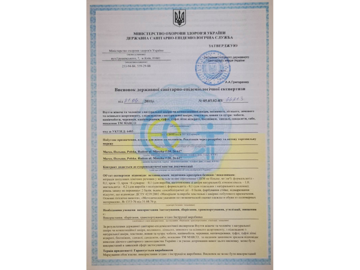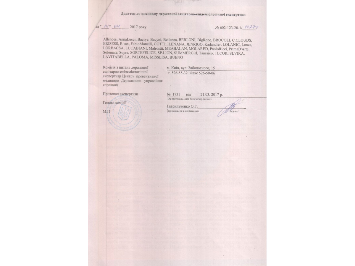 Сертификат качества на обувь MARKA, Sala, , Baldacini, Karino, Gold But