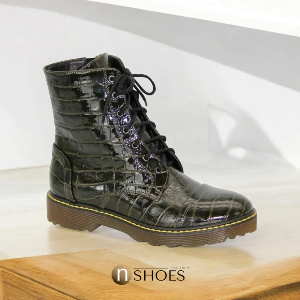 ✔ Type of footwear: low-speed boots with a snake and lacing;