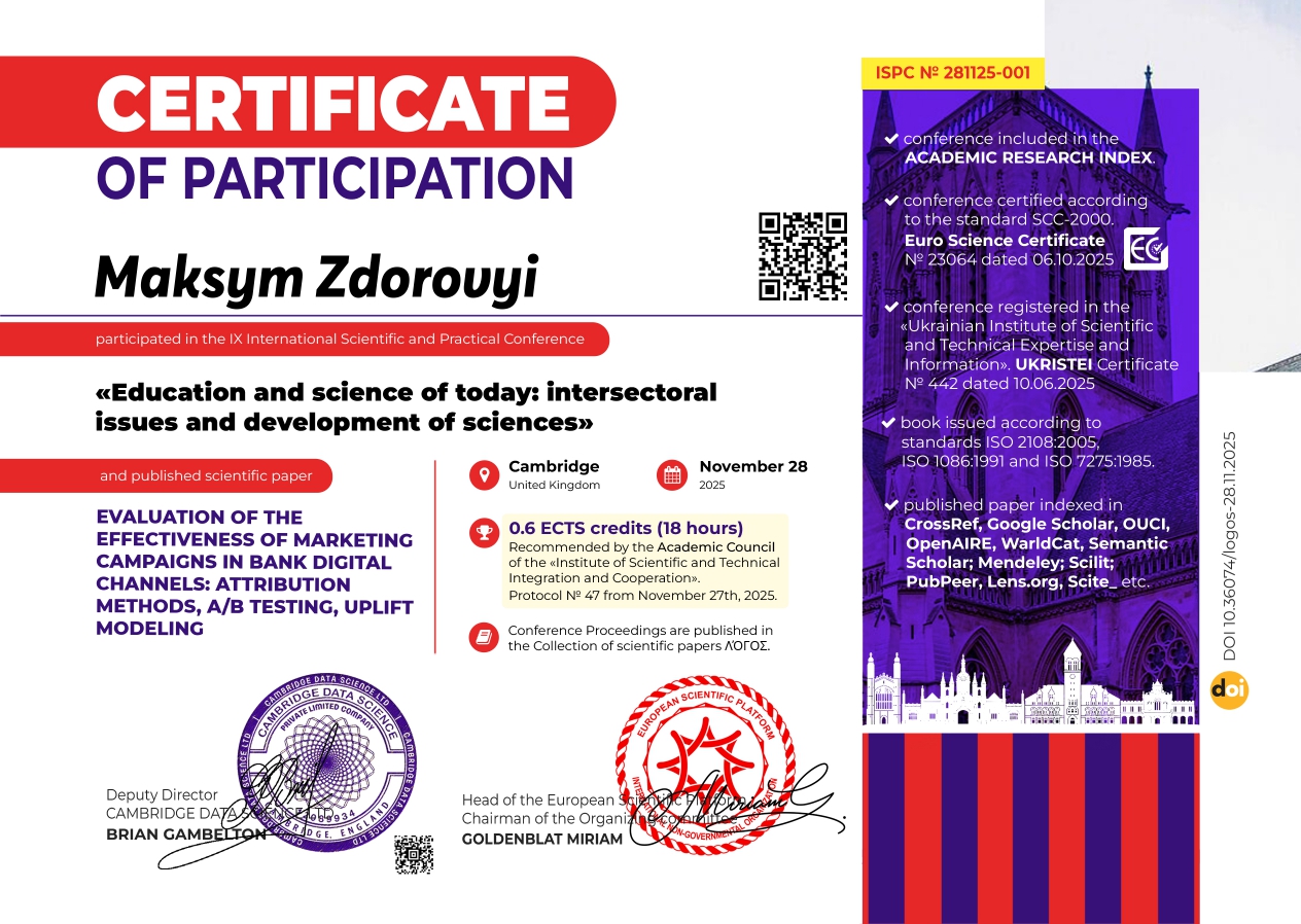 Соучредитель компании с глубокими знаниями в области цифровых технологий и инновационных бизнес-решений. Активно внедряет AI, Machine Learning и Data Science в ритейл и банковский сектор.