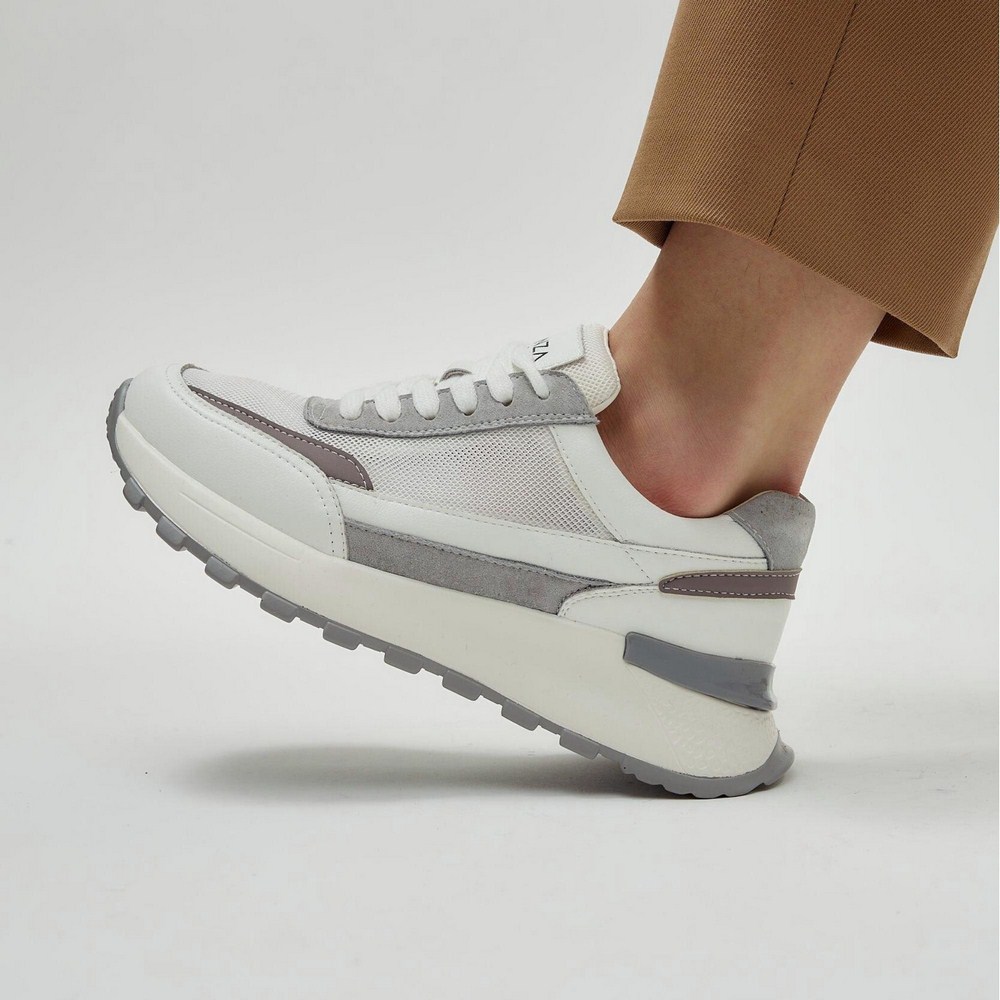 Модель выполнена в двух цветах: преимущественно белом с серыми вставками. Логотип Lonza приятного серого оттенка размещен на язычке. Задник кроссовок тоже серый. Шнуровка белого цвета в тон основе. Подошва двухцветная, с оригинальным волнистым протектором.