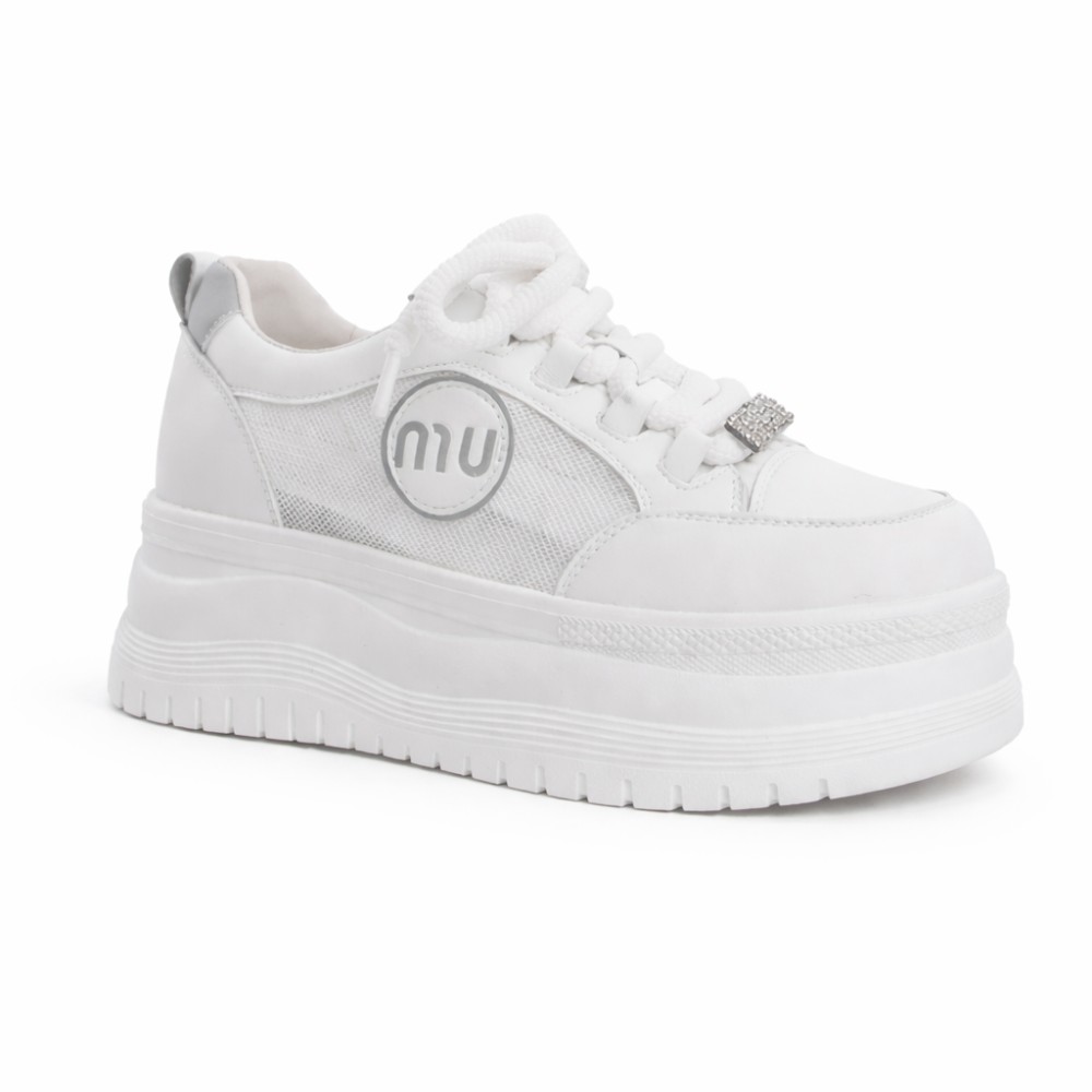 Жіночі білі кеди на платформі Allsy 207391: Твій бездоганний стиль із ноткою Miu Miu